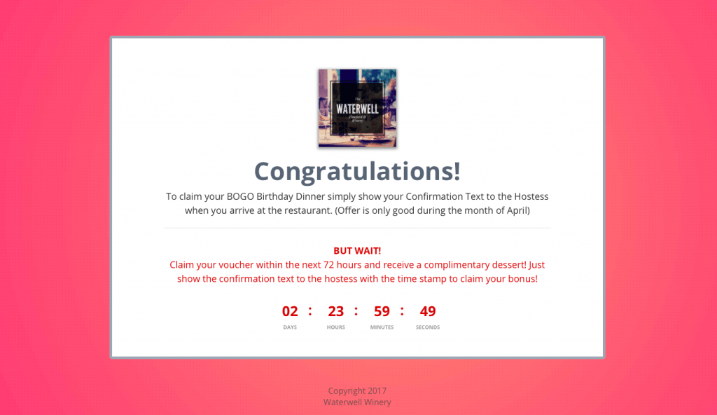 No worries if you’ve never used text messaging in your marketing efforts. But, you should, without a doubt, consider adding it to the mix, as it’ll put the dinner voucher in their hands, making it easier to redeem.